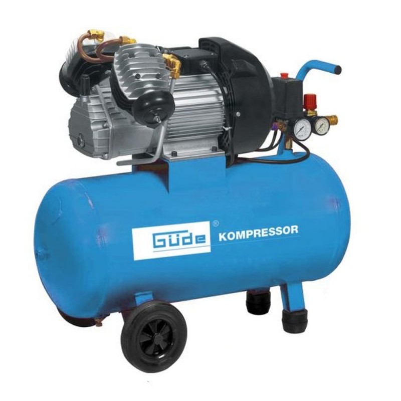 Compresor cu pistoane in V, cu ulei, 2 manometre, robinet de scurgere a condensului acumulat in butelie.