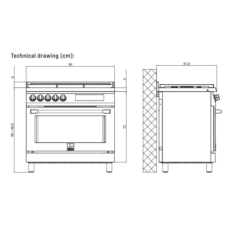 Aragaz Lofra ITALIA ANMG96WMFT/AEO , 90X60cm, 5 arzatoare, cuptor electric, grill electric, timer, aprindere electronica, Negru