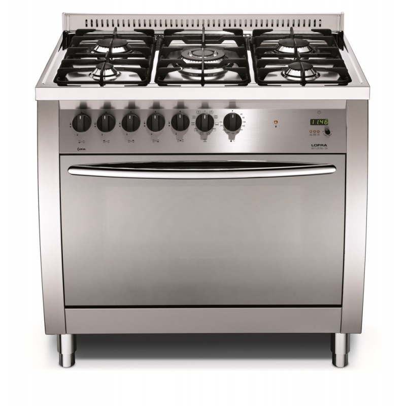 Aragaz Lofra Curba CG96GV/C, gaz, 90x60cm, 5 arzatoare, grill electric, timer, cuptor gaz, aprindere electronica, inox