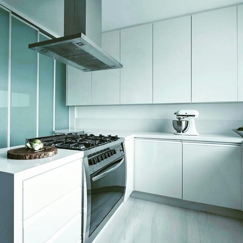 Splashback-ul este confectionat din otel inoxidabil. Usor de curatat, acesta protejeaza peretele de stropii ce apar in timpul gatirii.