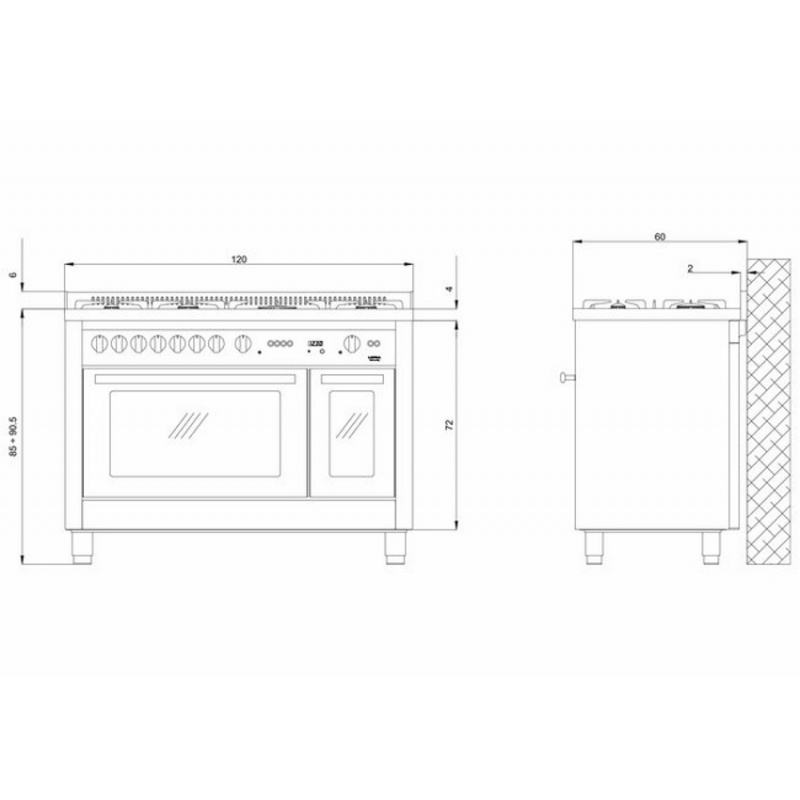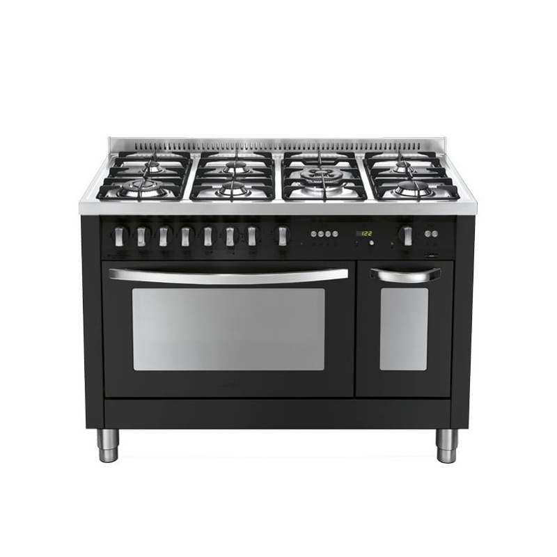 Aragaz Lofra Professional 120 PMND126GV+E/2Ci, 120x60cm, 7 arzatoare, 2 cuptoare gaz-electric, rotisor, grill , timer, negru