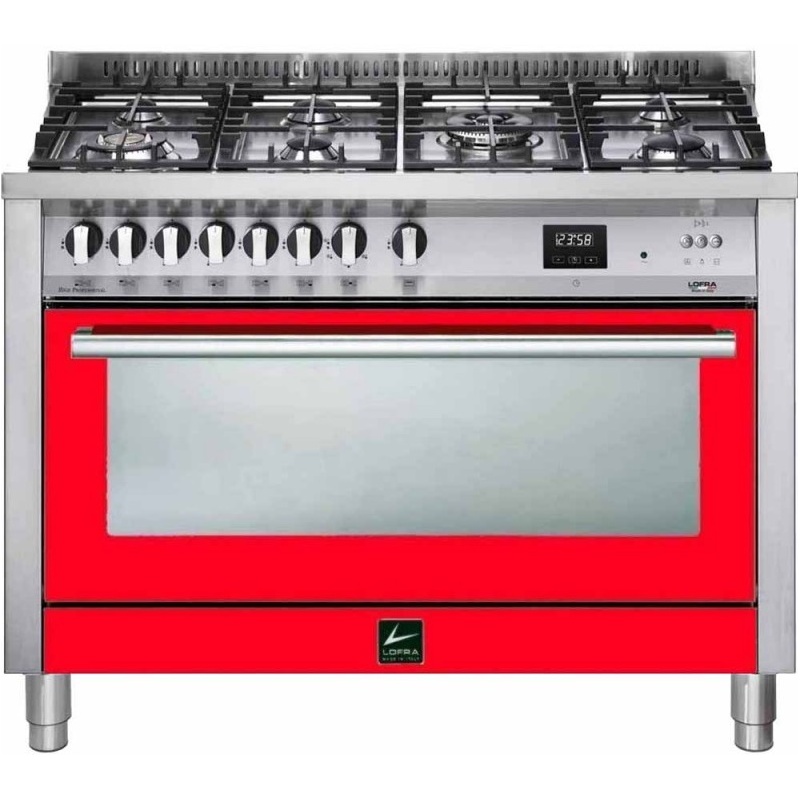 Aragaz Lofra Professional 120 PNMG126GVGT/2Ci 120X60cm, 7 arzatoare, cuptor gaz, rotisor - grill, ventilare dubla, timer, Rosu