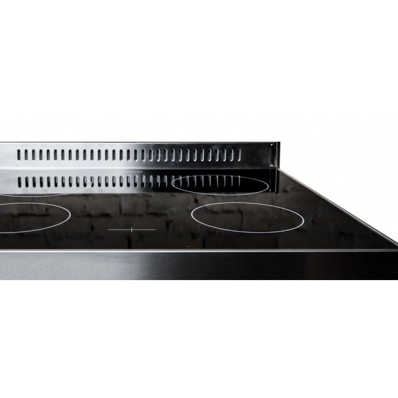 Splashback-ul este confectionat din otel inoxidabil. Usor de curatat, acesta protejeaza peretele de stropii ce apar in timpul gatirii.
