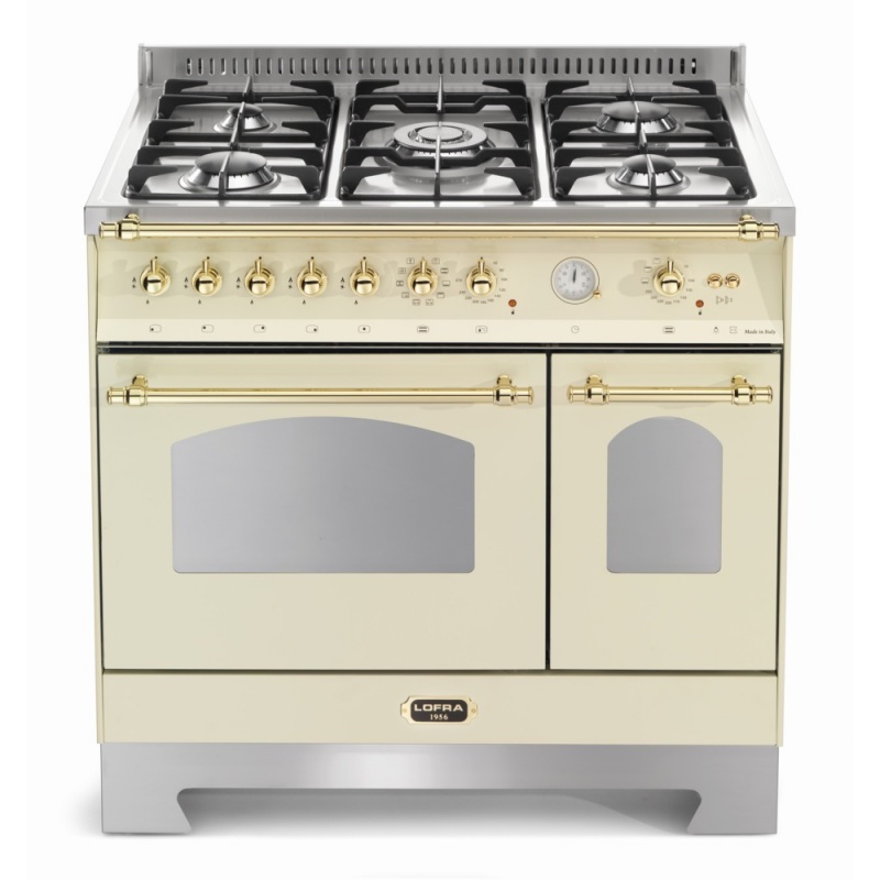 Aragaz Lofra Dolcevita RBID96MFTE/CI, 90x60cm, gaz, 5 arzatoare, grill, rotisor, timer, cuptor dublu + Splash Back 90 + Hota Dolcevita 90, crem