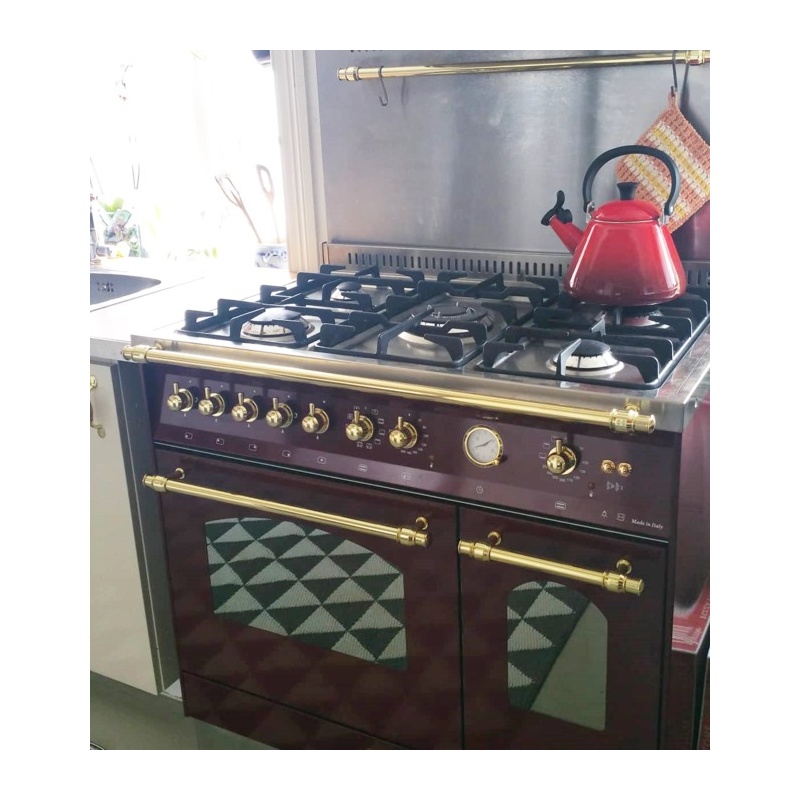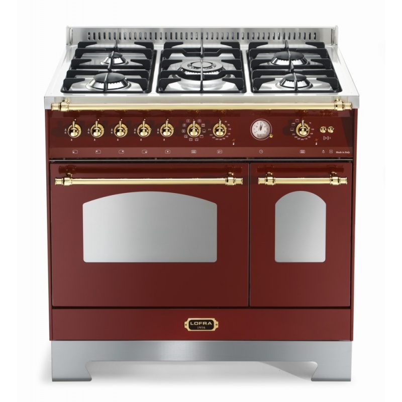 Set Aragaz Lofra Dolcevita RRD96MFTE/CI, 90x60cm, gaz, 5 arzatoare, cuptor dublu+Splash Back 90+Hota Dolcevita 90, Rosu Burgundy