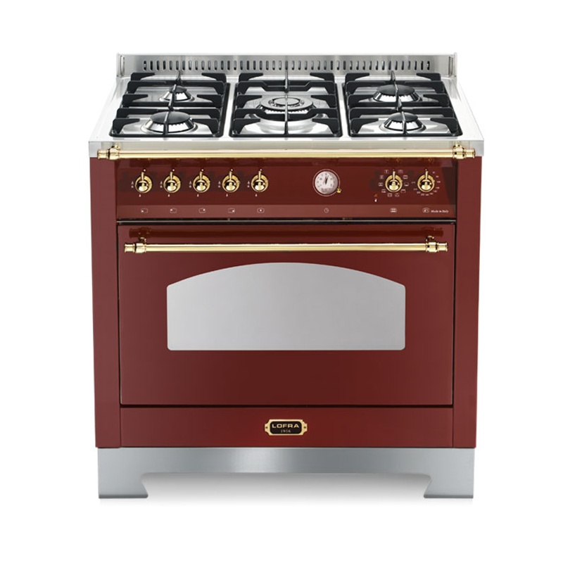Set Aragaz Lofra Dolcevita RRG96MFT/CI, 90x60cm, gaz, 5 arzatoare, grill +Splash Back 90+Hota Dolcevita 90, Rosu Burgundy