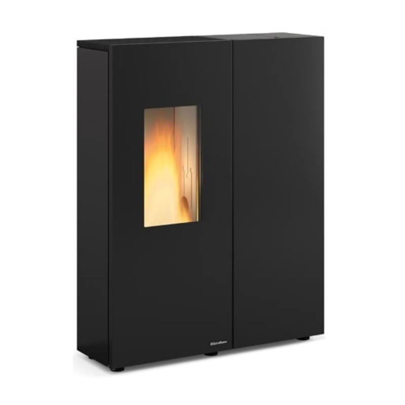 Soba pe peleti subtire, ermetica cu sistem de conducte NORDICA SHARON PLUS STEEL, putere 10.0 kW-N, culoare negru