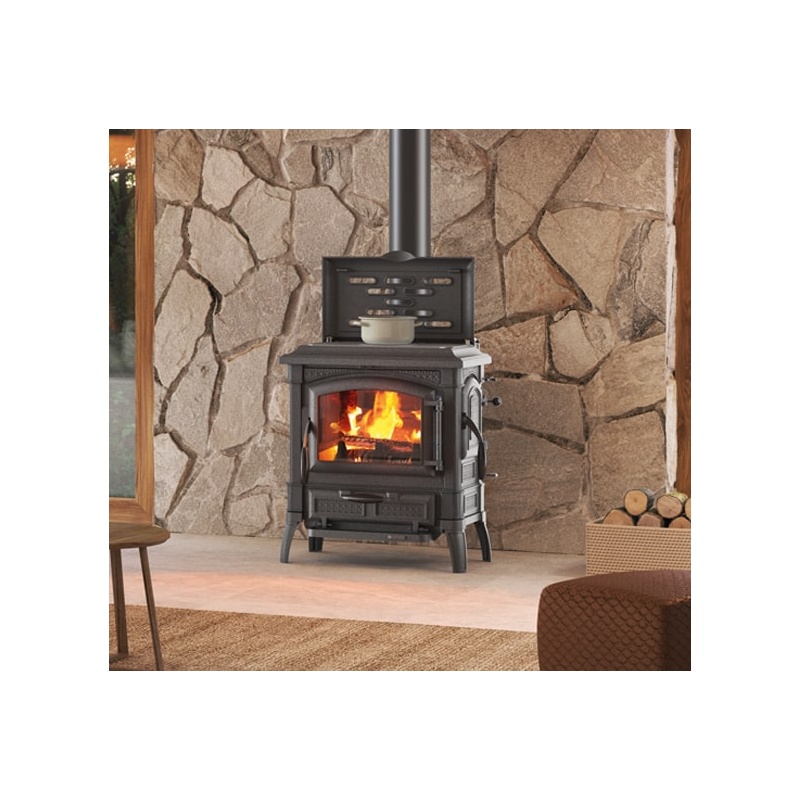 Soba din fonta pe lemne NORDICA ISETTA CON CERCHI EVO 4.0, putere 7.3 kW-N, culoare negru antracit