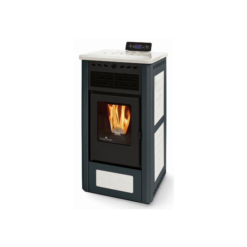 Soba pe peleti PHEBO Gea, putere termică 9.1 kW, culoare negru-alb