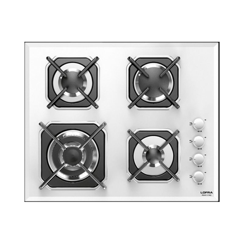 Plita incorporabila Lofra Mercurio HGB6H0, 60 cm, plita gaz, 4 arzatoare,sistem siguranta Stop-Gaz,sticla alba
