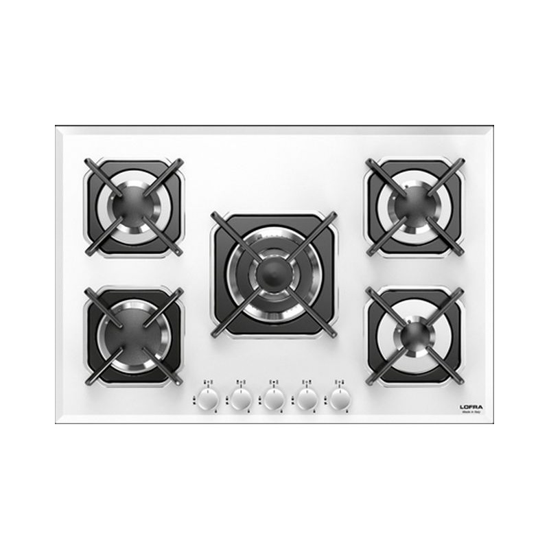 Plita incorporabila Lofra Sirio HGB7E0, 75 cm, plita gaz, 5 arzatoare,sistem siguranta Stop-Gaz,sticla alba