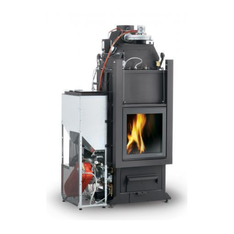 • șemineu hibrid pe lemne/peleți pentru încălzirea apei
