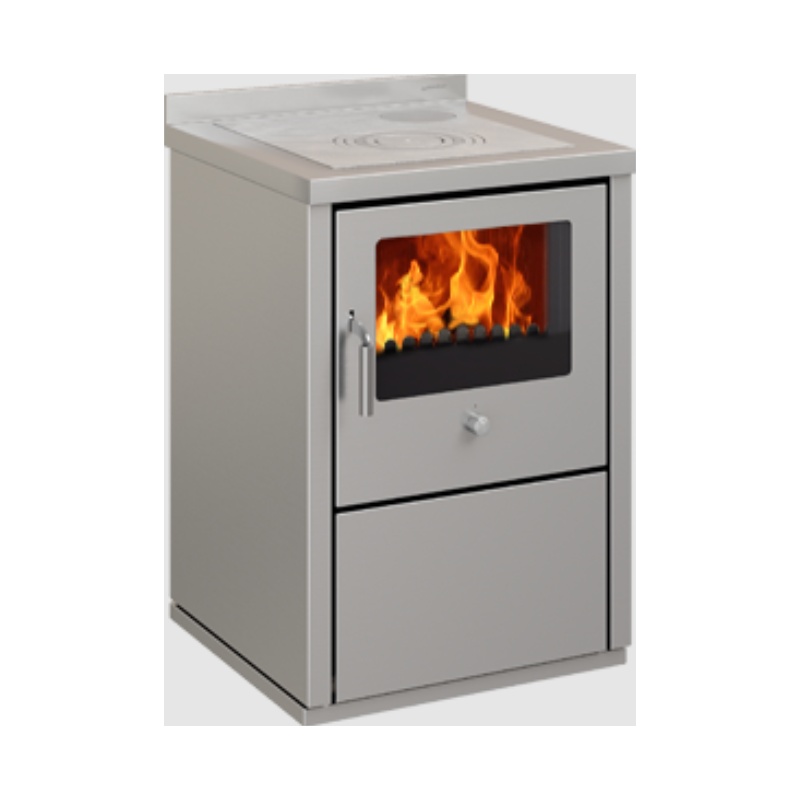 Sobă pe lemne cu cuptor DE MANINCOR E60, dimensiuni 60x60x86 cm, culoare otel inoxidabil