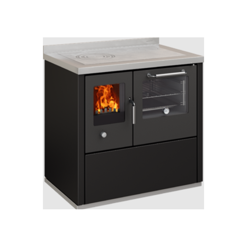Sobă pe lemne cu cuptor DE MANINCOR E90, dimensiuni 90x60x86 cm, culoare negru cu usi negre