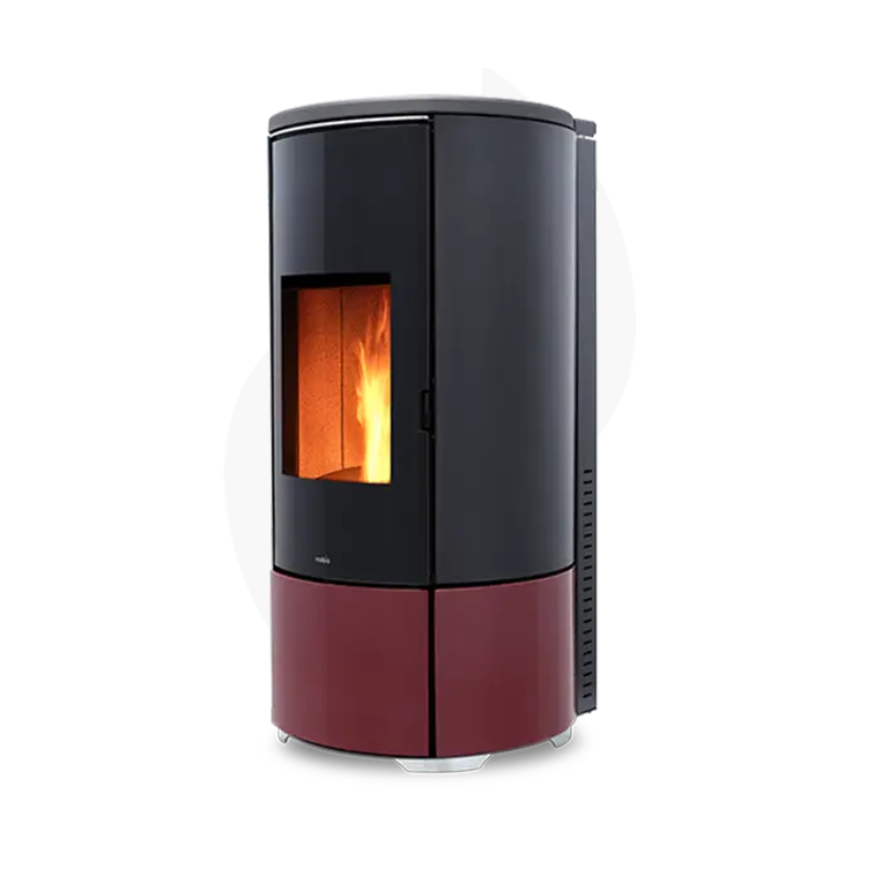 Sobă pe peleți cu evacuare superioară NOBIS ROUND TOP A8, dimensiuni 53 x 58 x 113 cm, culoare bordeaux